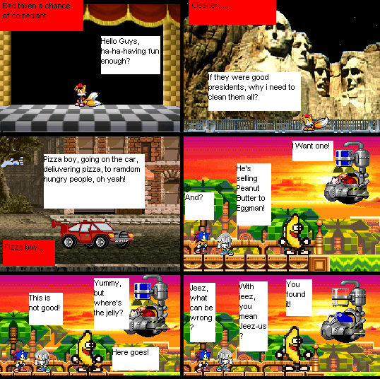 Comments12 Red 's Job GM Tails September 17, 2010 User blog:GM Tails Red need some money, so he tryed some jobs, some of they, are funny, enjoy! PEANUT BUTTER JELLY TIME! Related Categories Category: Blog posts
