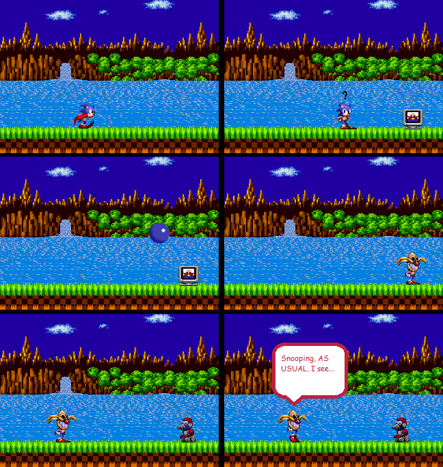 Comments25 Grounded to Promotion (Power-Up Mis-Hap 1) NomadMusik August 24, 2012 User blog:NomadMusik Sonic... Y U GRAB DEBUG POWER UP? New series, new credits: All non-background sprites: Spriter's Resource. Background: The Mystical Forest Zone Question Mark: Me. Related Categories Category: Blog posts